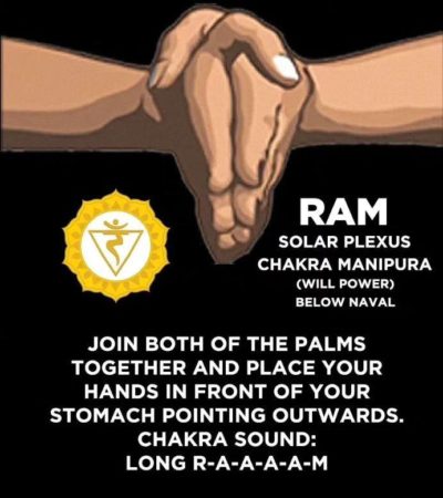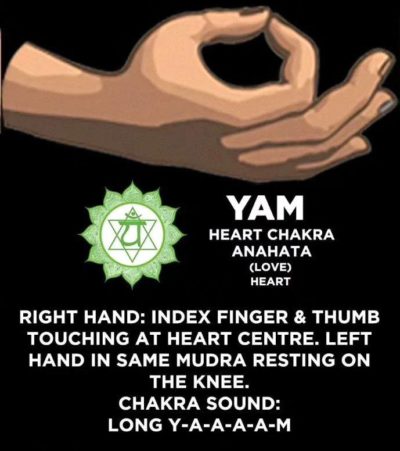 - Anahata (right below the junction of the ribs of the chest),