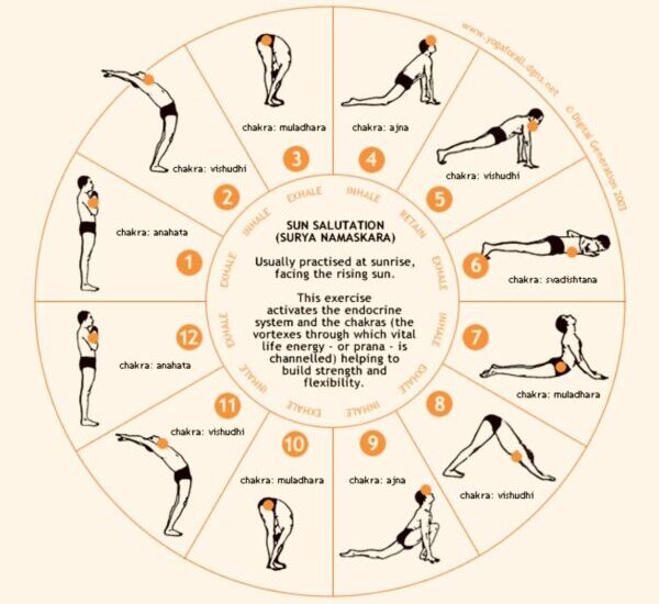 Техніка являє собою серію з 12 асан, в яких відбуваються послідовні нахили вперед і назад, що згинають і витягують хребет та інші частини тіла. Якщо Ви знаходите своє тіло недостатньо гнучким, м’язи надто напруженими та жорсткими, то Вам слід розпочати виконання комплексу у повільному неквапливому ритмі, з максимально можливим розслабленням у кожному новому положенні тіла.